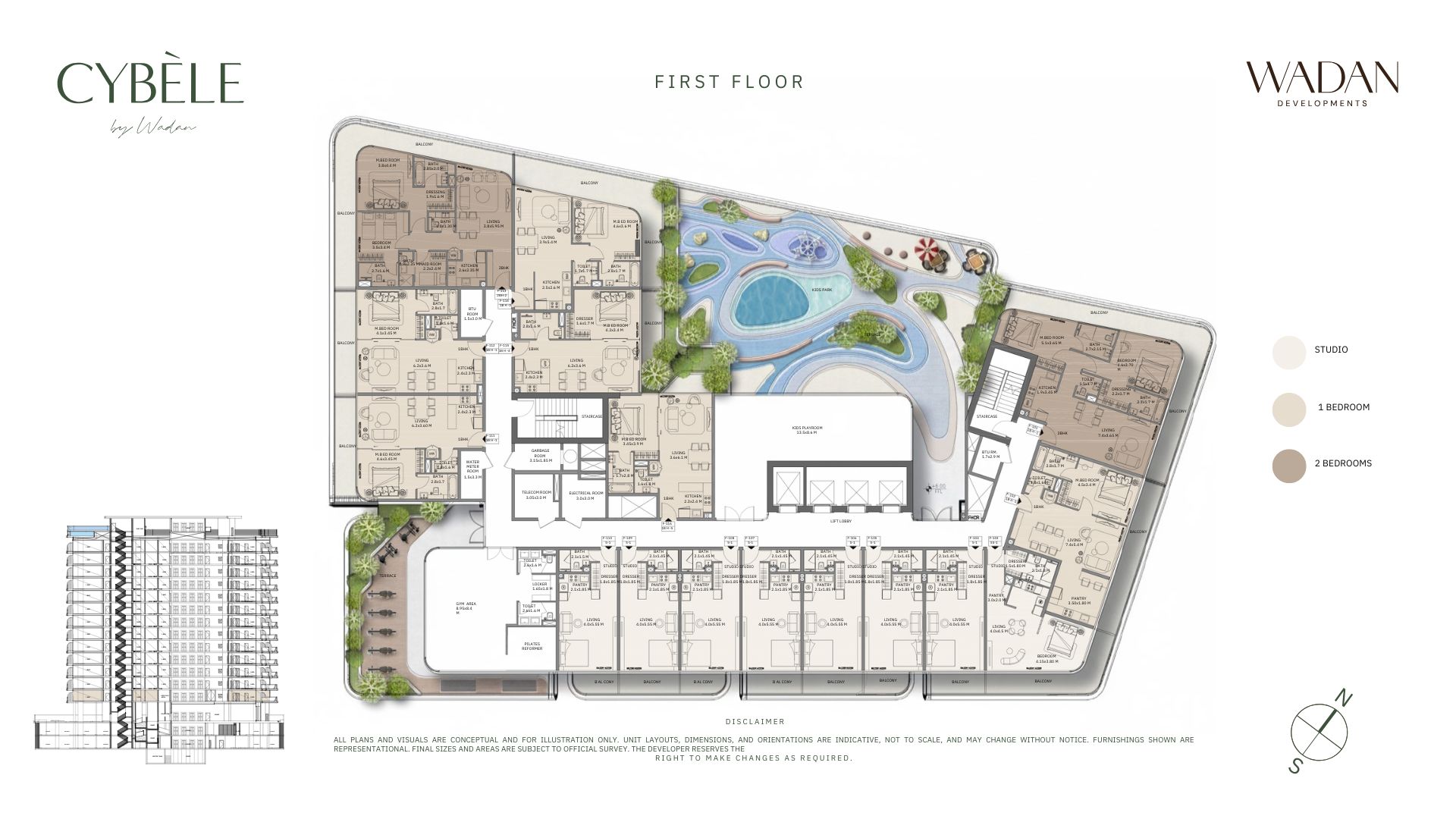 Cybele sits directly opposite a beautifully landscaped community park and villa district, providing generous outdoor spaces, peaceful green views, and light-filled interiors throughout the building.